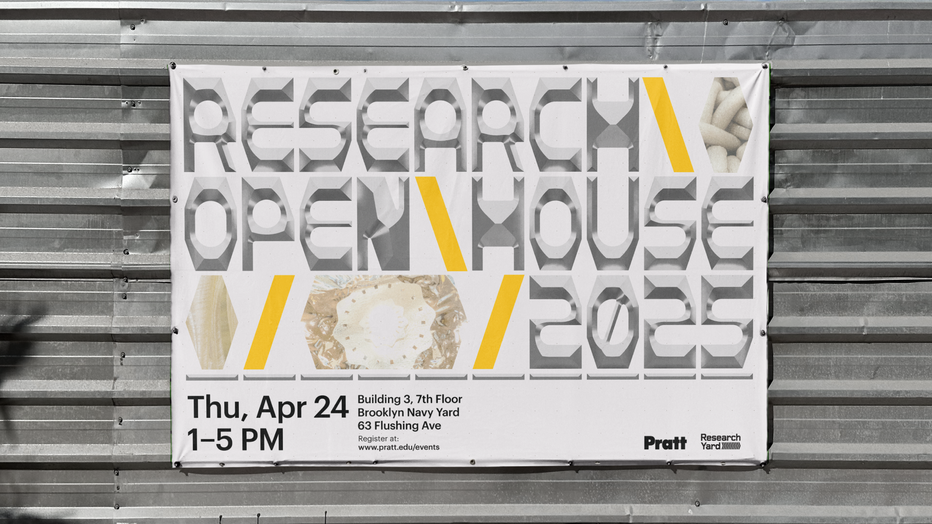 Research Open House 2025 is an annual exhibition of student work hosted at Pratt Institute’s Research Yard. The exhibited projects highlight the latest advancements in material science and fabrication. The event identity and custom typeface I designed for the 2025 event evokes ideas of experimentation while keeping it grounded in Pratt’s visual identity system.